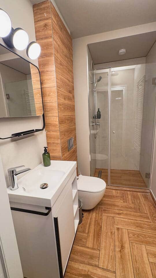 Apartament jest wyposażony w płaski telewizor z dostępem do telewizji VOD, dzięki czemu możesz zrelaksować się przy ulubionych filmach czy serialach. Łazienka została przygotowana z myślą o Twoim komforcie – do dyspozycji masz ręczniki, suszarkę do włosów oraz podstawowe kosmetyki, takie jak płyn pod prysznic i do mycia rąk.